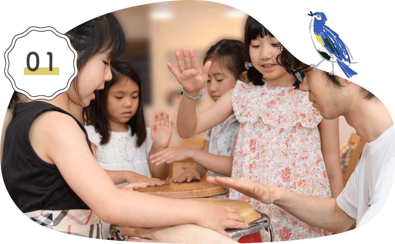 月・水・木曜日には全ての創造の源泉である芸術活動を。多様な芸術活動はそれぞれ異なる感覚を刺激しながら、創造する力を養います。 金曜日には、それらを文化文明に結びつけて発展させた活動をしています。